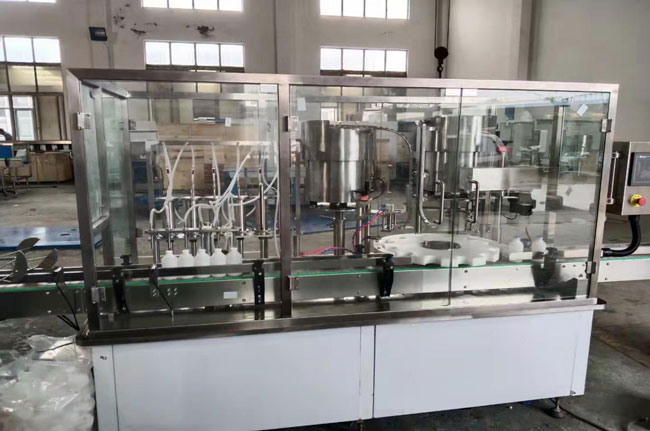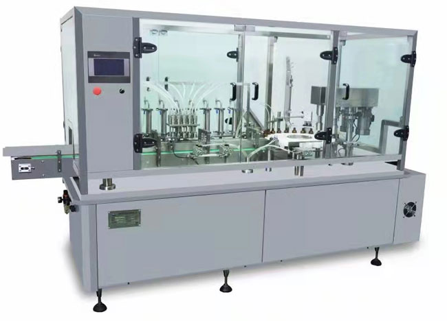 GYGX型大容量灌裝旋蓋機(jī)是灌裝生產(chǎn)線中50-250ml試劑、口服液等中的灌裝主機(jī),主要用于對(duì)50ml-250ml的液體灌裝,采用供瓶盤(pán)進(jìn)瓶,送瓶可靠局部跟蹤灌裝,不易產(chǎn)生泡沫,上蓋率高。