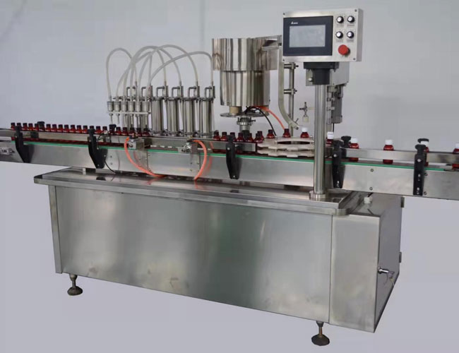 設(shè)備整機(jī)采用變頻調(diào)速、等分盤(pán)定位、柱塞泵灌裝、單頭旋蓋;具有無(wú)瓶不灌裝等保護(hù)功能,確保生產(chǎn)正常運(yùn)行。機(jī)器自動(dòng)化程度高,運(yùn)行穩(wěn)定,操作十分方便,符合GMP要求。